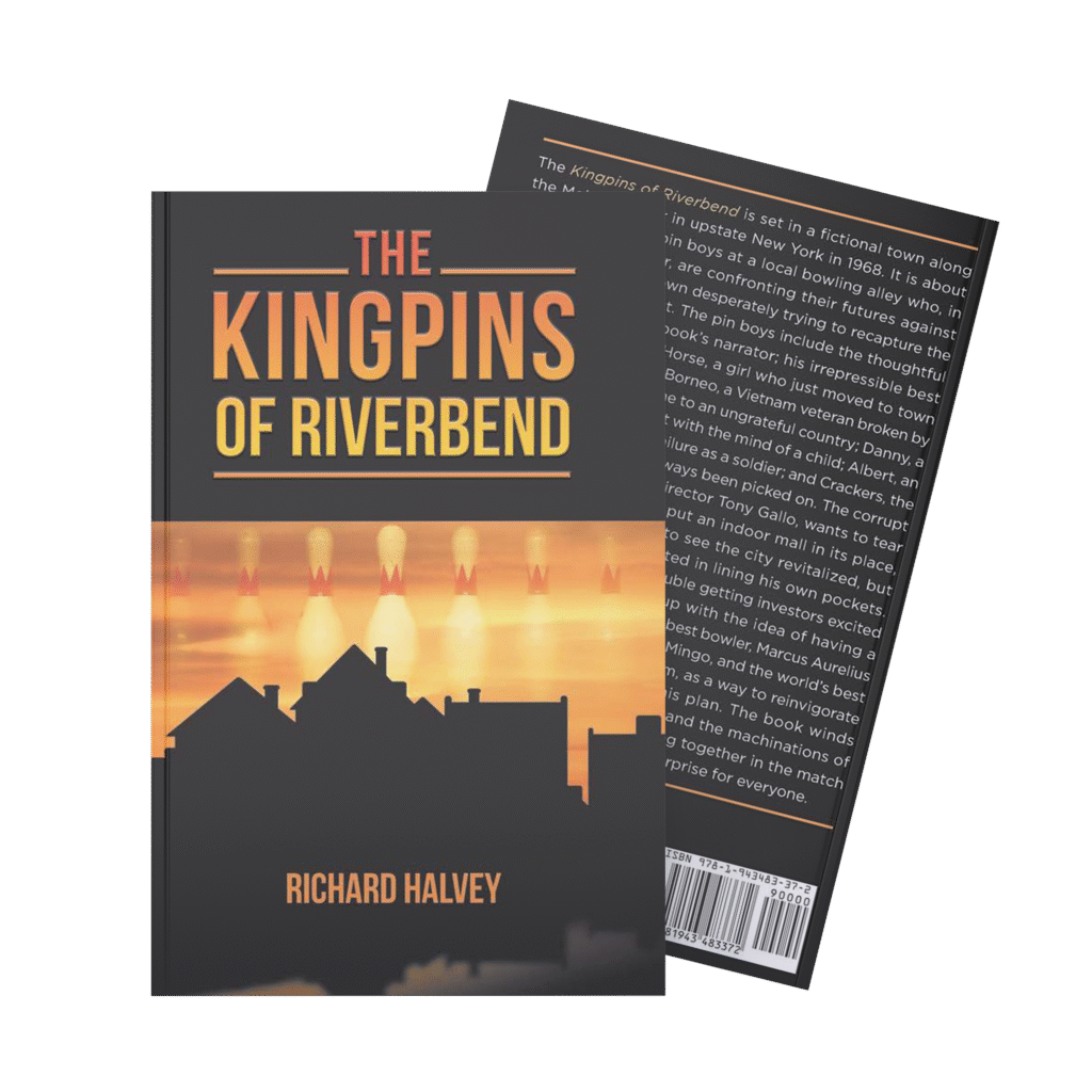 The Kingpins of Riverbend is set in a fictional town along the Mohawk River in upstate New York in 1968. It is about a group of seven pin boys at a local bowling alley who, in one way or another, are confronting their futures against the backdrop of a town desperately trying to recapture the prosperity of the past.